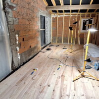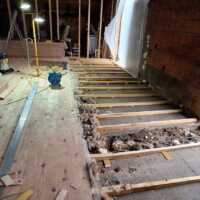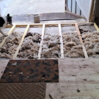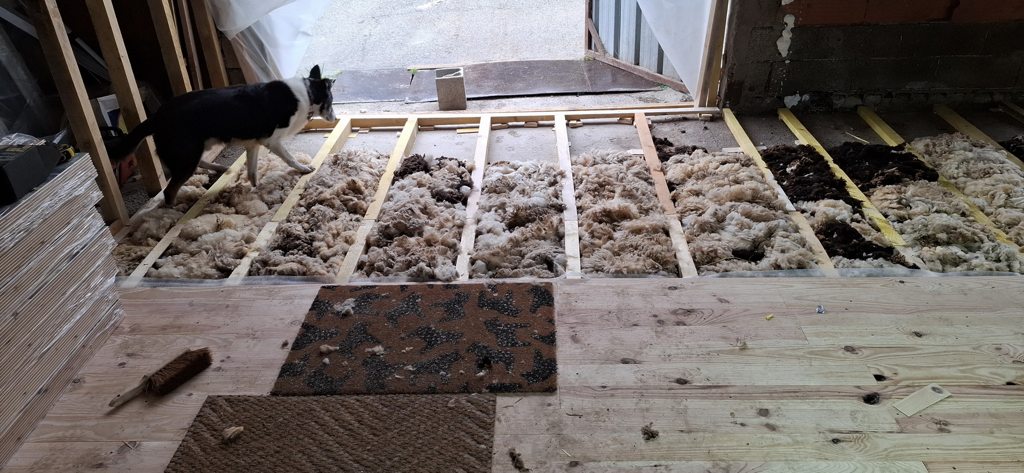 In ieder geval zijn we vrijdag weer aan de slag gegaan. Eerst de onderbalken er verder in krijgen, wat een behoorlijk vervelend en tijdrovend werkje is. De vloer loopt aan 2 kanten op dus moest elke balk afzonderlijk worden opgemeten. Daarnaast is de betonnen vloer niet egaal en glad staat soms ook nog bol. Dus met heel veel blokjes werken en later al die blokjes weer vastkitten aan de vloer. Toch viel het redelijk mee om te doen. Zaterdag moet de vloer er verder in en dan is de grote ruimte klaar wat de vloer leggen betreft. Schuren en lakken moet later natuurlijk ook nog gedaan worden, maar dat is de allerlaatste etappe.