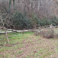 De bomen lieten zich redelijk makkelijk vellen. Samen met Gilbert gedaan. Hij is degene die de bomen omhakt. Daarna ga ik aan de slag met de kettingzaag om ze in meer handzamere stukken te zagen die we dan vervolgens weer met de tractor het bos uit trekken en op de weide neer leggen. Dan ben ik verder met Dorine aan de beurt om het allemaal in kleinere moten te zagen en indien mogelijk te stapelen zodat we het in augustus of september verder kunnen kloven en kunnen weghalen. Dat gaan we de komende weken doen.