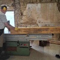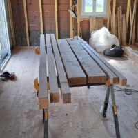 Alle grote balken zijn verzaagd in kleinere balken en maten die ik nodig heb om het kozijn voor de grote deuren van de ingang te maken. Blijft alleen het schaafwerk nog over wat ik zaterdag heb gedaan. Noodzakelijk om alles perfect dezelfde maat te geven maar ook een zeer tijdrovend werkje. De hele zaterdag in de weer geweest om alles naar de juiste maat terug te brengen. Maar inmiddels ligt alles klaar om er volgende week mee aan de slag te gaan en te kijken of ik, als niet timmerman, toch vanuit scratch een paar mooie toegangsdeuren kan maken. Het zal een uitdaging worden en ik moet eerlijk bekennen dat ik er ook wel een beetje wakker van lig.