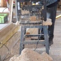Verder hadden we nog grote houten balken liggen van 20 x 20 centimeter. Die had ik ooit 3 jaar geleden verkeerd gekocht en waren te groot. Een vriend heeft een zaagmachine voor bomen en balken dus de boel in de bus gegooid en naar hem toe gereden. Maar helaas pindakaas…. De machine bleek niet goed te werken en was dus niet te gebruiken om een goede zaagsnede te maken. We hebben de balken toen op de zaagtafel zover mogelijk door gezaagd en de rest moest ik verder thuis doorzagen (resterende 4 centimeter).