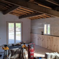 We zijn opnieuw ontzettend tevreden met het resultaat. De volgende stap? De elektra aanleggen in het plafond aan de zuidkant. En zodra dat klaar is… jawel, dan gaat het eerste deel van het plafond erin! Dat zal een enorme transformatie opleveren.