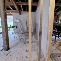 Toch kunnen we terugkijken op een productieve week. De muur tussen de keuken en bijkeuken staat, en grappig genoeg lijkt het gebouw daardoor breder in plaats van langwerpiger. Een mooie visuele verandering!