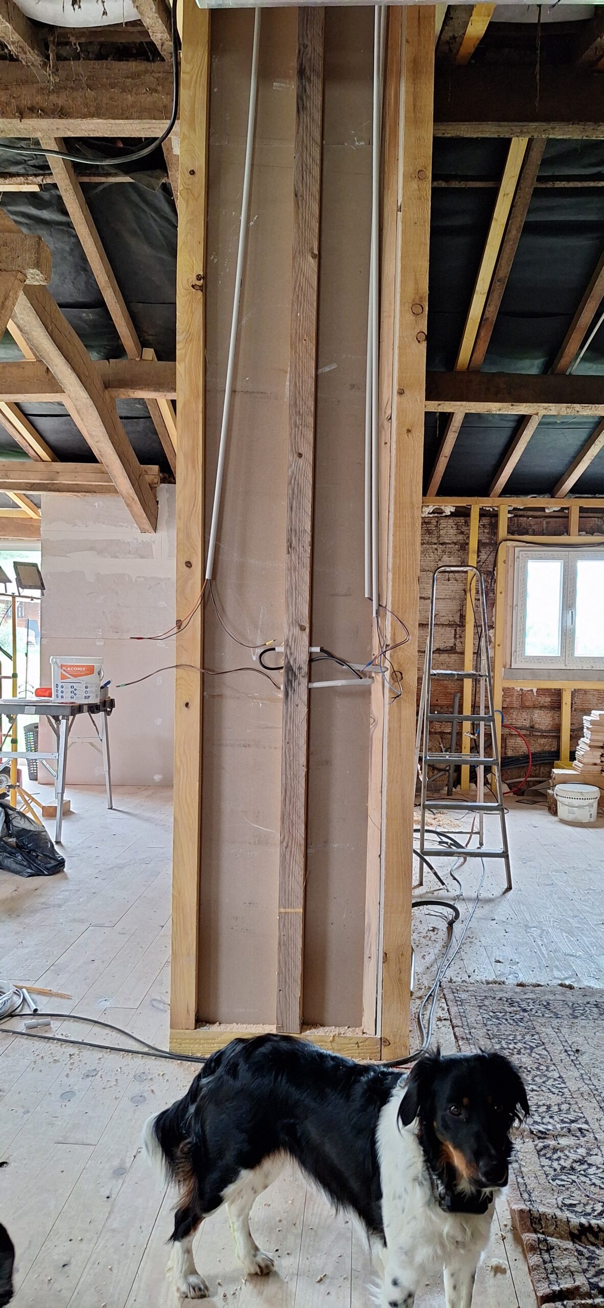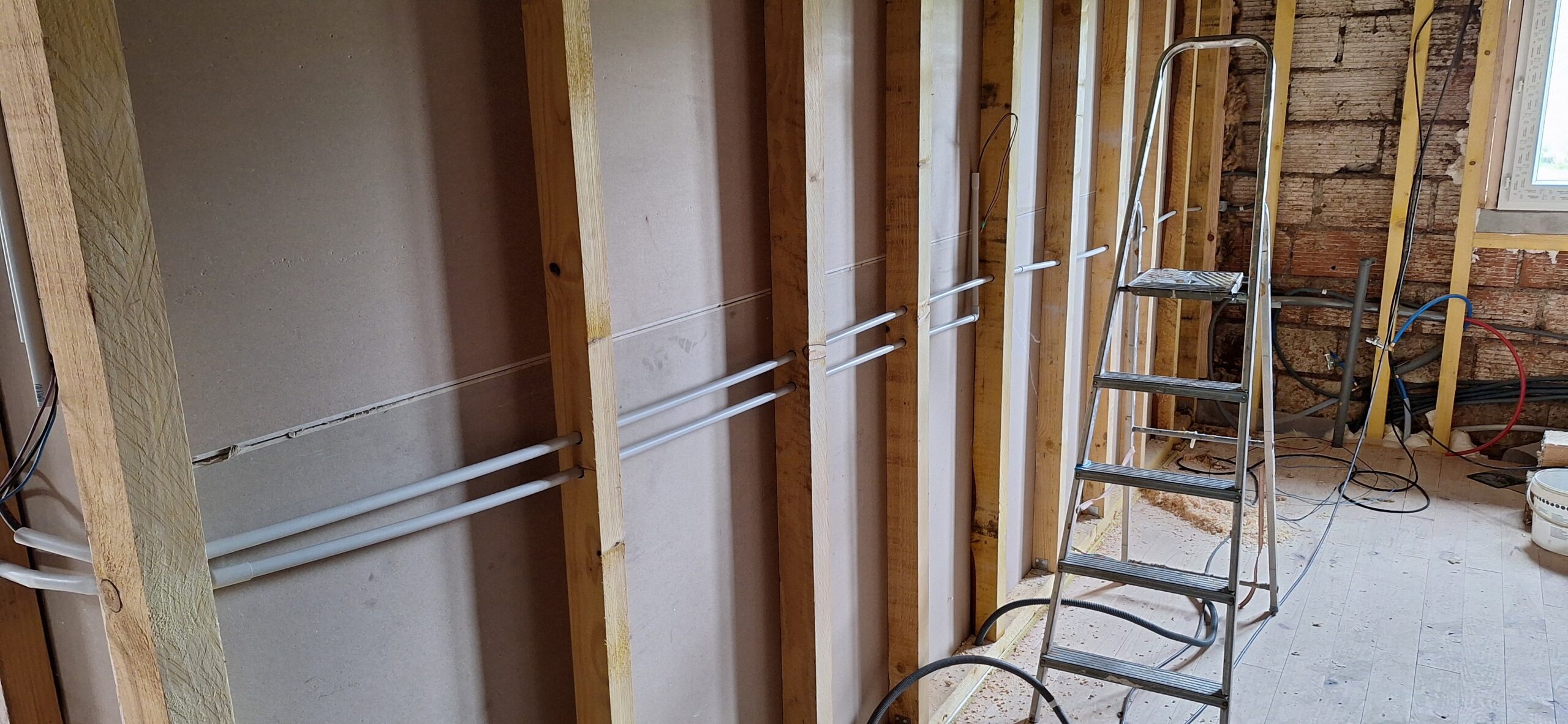 Dus dacht ik: laat ik maar met een makkelijk klusje beginnen (in een vlaag van optimisme). Elektra in het plafond aanleggen, zodat we binnenkort het plafond kunnen afmaken. Klinkt overzichtelijk, toch? Nou, dat viel even tegen. Ten eerste bleek niet alle benodigde bekabeling in huis te zijn, dus moest ik halsoverkop naar de bouwmarkt om de ontbrekende spullen aan te vullen. Ten tweede protesteerde mijn lijf flink tegen al dat op- en afklimmen van de trapjes. Maar goed, na twee dagen zat de bedrading er in elk geval in — voor het woongedeelte dan.