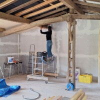 Komende week gaan we verder met het plafond. Dat moet in de komende 2 weken klaar zijn. Daarna de tussenwand en de lambrisering er van. Dan kunnen we de keuken gaan opbouwen. Jawel… het begint ergens op te lijken.