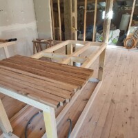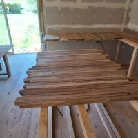 Al met al was het weer een drukke tijd! De eerste latten zijn nu gelijmd en ik hoop dat alles goed lukt. Dan kan ik volgende week weer verder met de rest. Zie de bijgevoegde foto’s!
