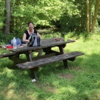 Afgelopen week ontsnapten er trouwens ook nog twee ezels. Gelukkig waren ze niet ver weggelopen, maar bij het terughalen is Dorine gevallen en op haar knie terechtgekomen. Resultaat: een dikke, gezwollen knie vol vocht. Dus dat betekent rust… NATUURLIJK… voor wie Dorine kent: rust, ja ja! Ze kon zaterdag in elk geval niet mee fietsen, dus besloot ik het rondje alleen te doen. Dorine zou gewoon mee gaan (rustig aan, natuurlijk) en dan zouden we samen na afloop bij een leuk picknickbankje aan het water een kopje koffie drinken en een croissantje eten. Ben ik bijna bij dat bankje — nog zo’n 3 km te gaan — wie kom ik daar tegen? Juist, Dorine met Amai, die een stukje waren gaan lopen. Uiteraard, rustig aan doen. 😉