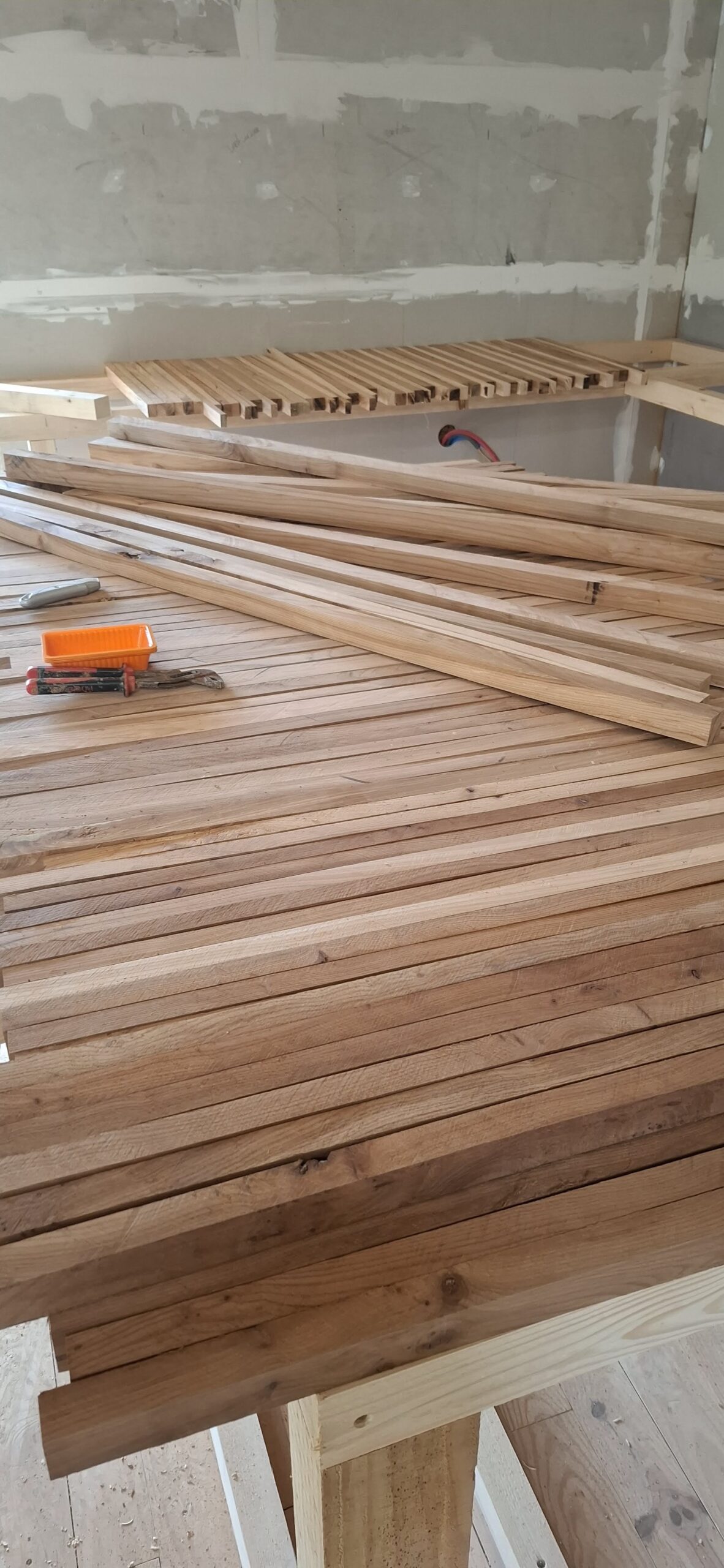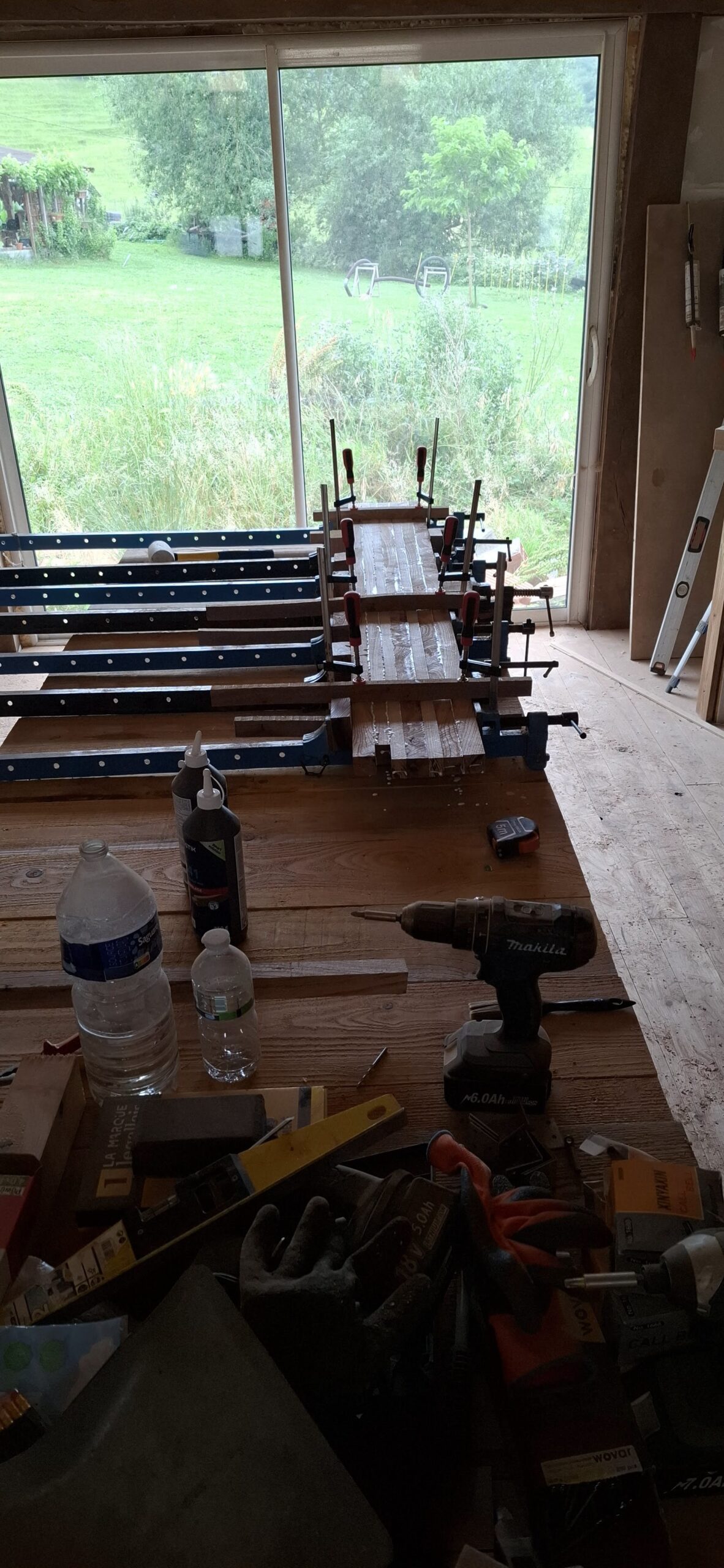 Al met al was het weer een drukke tijd! De eerste latten zijn nu gelijmd en ik hoop dat alles goed lukt. Dan kan ik volgende week weer verder met de rest. Zie de bijgevoegde foto’s!