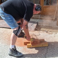 Hoe ik het ook aanpak, ik krijg hem maar niet waterpas. De plavuizen lopen scheef, de voegen dansen vrolijk hun eigen choreografie en sommige tegels lijken gewoon te weigeren om netjes te liggen. Al twee keer opnieuw begonnen, met frisse moed en nog frissere vloeken, maar telkens liep het mis.