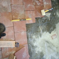 Bij ons liggen de tomettes al een paar honderd jaar in het zand en ik kan het niet aanbevelen. In zand blijken altijd torretjes en muisjes te kunnen blijven graven. Tegels verzakken daardoor en breken, en leveren op zijn minst de irritatie dat ze wippen en niet gelijk liggen bij het stofzuigen.
