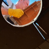 En alsof dat allemaal nog niet genoeg was, hebben we ook wat dagen op het dak gestaan. We hebben ergens een lek, maar niemand weet waar. Alleen bij stevige oostenwind laat het zich zien — alsof het lek een voorkeur heeft voor windrichting.