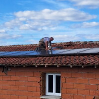 Negen dagen na ons bezoek is er ondanks mindere motivatie is er voor een gewone burger erg veel werk verzet. De badkamer had een aflopende zandvloer. De kachel stond nog los in de kamer en er was nog niet naar het lekkende dak gekeken.