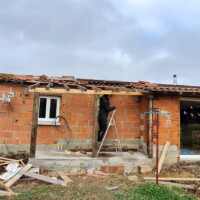 We hebben de afgelopen tijd bepaald niet stilgezeten. Integendeel zelfs. Het voelt alsof alles nu in een stroomversnelling is geraakt. De badkamer is inmiddels helemaal af. En geloof me, dat is al een enorme mijlpaal. De waterleidingen zijn gecontroleerd, getest en goedgekeurd, dus geen onverwachte natte verrassingen – altijd prettig. Ook het afdak voor het schuurtje, waar straks de boiler en de gasfles komen te staan, is gerealiseerd. Dat klinkt misschien als een detail, maar het zijn precies dit soort dingen die ervoor zorgen dat een huis ook écht functioneel wordt.