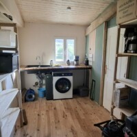De bijkeuken is ook klaar (hoe volwassen klinkt dat eigenlijk?) en – tromgeroffel – de wasmachine draait inmiddels vrolijk rondjes in de stal. Dat moment voelde verrassend emotioneel. Er is iets magisch aan een werkende wasmachine op een nieuwe plek. Alsof je denkt: ja, we hebben ons leven onder controle. Tot je je realiseert dat je nog 27 taken hebt met het label “divers”.
