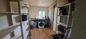 De bijkeuken is ook klaar (hoe volwassen klinkt dat eigenlijk?) en – tromgeroffel – de wasmachine draait inmiddels vrolijk rondjes in de stal. Dat moment voelde verrassend emotioneel. Er is iets magisch aan een werkende wasmachine op een nieuwe plek. Alsof je denkt: ja, we hebben ons leven onder controle. Tot je je realiseert dat je nog 27 taken hebt met het label “divers”.