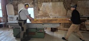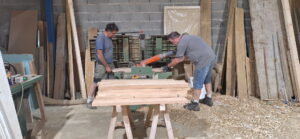 Eindelijk! Vandaag hebben we de laatste partij hout verwerkt en verzaagd naar kleinere houten balkjes die weer verlijmd konden worden. Na dagen te hebben gezaagd en geschaafd was het rond ...
